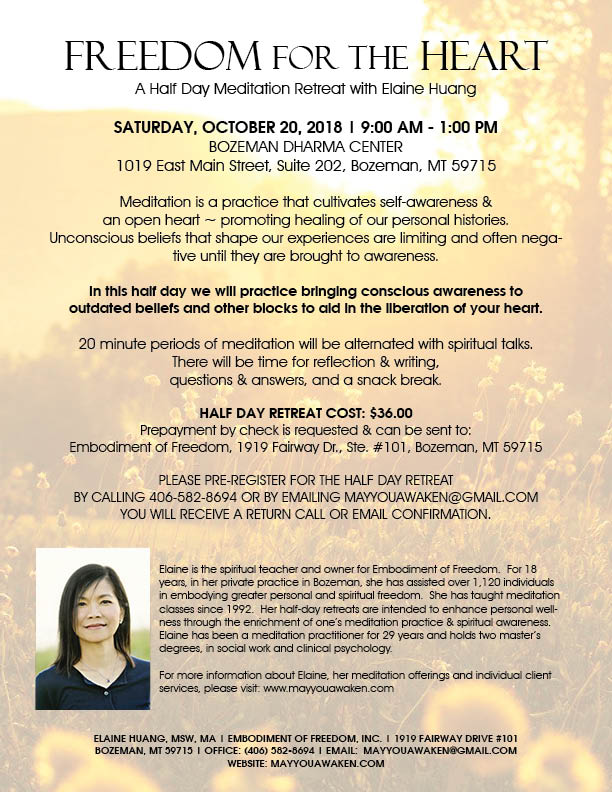 Meditation & Awakening Workshop at Recovery Elevator Bozeman Retreat